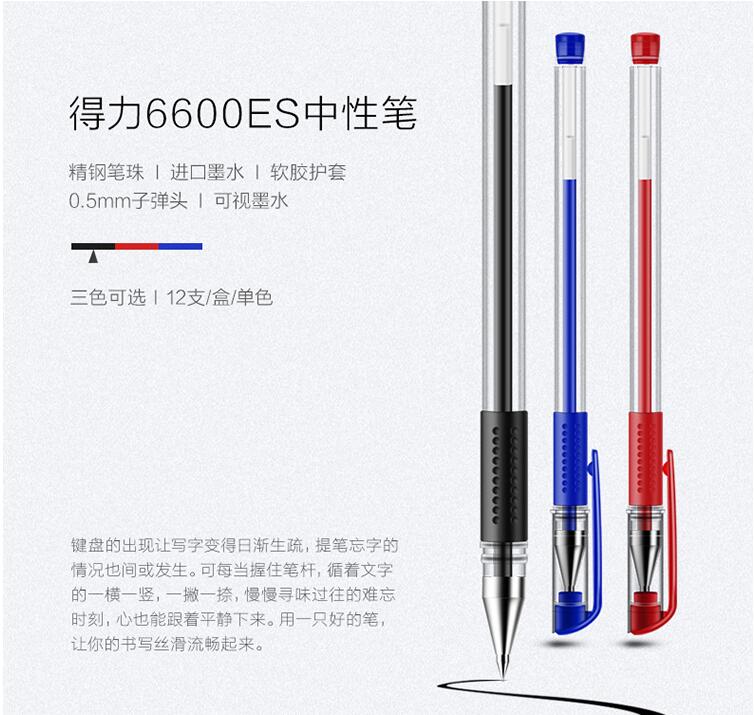 得力30支裝水性筆0.5mm黑色水筆辦公學習書寫中性筆碳素簽字筆學生用文具辦公用品